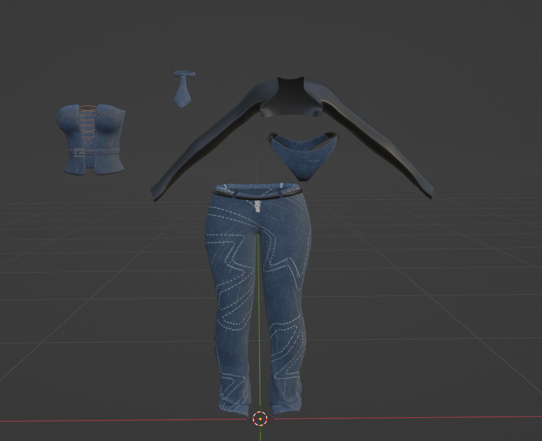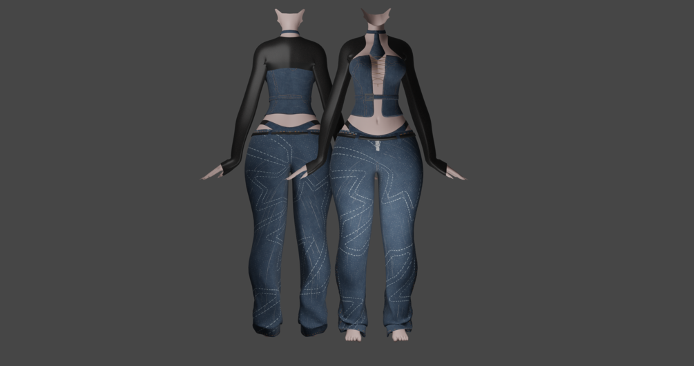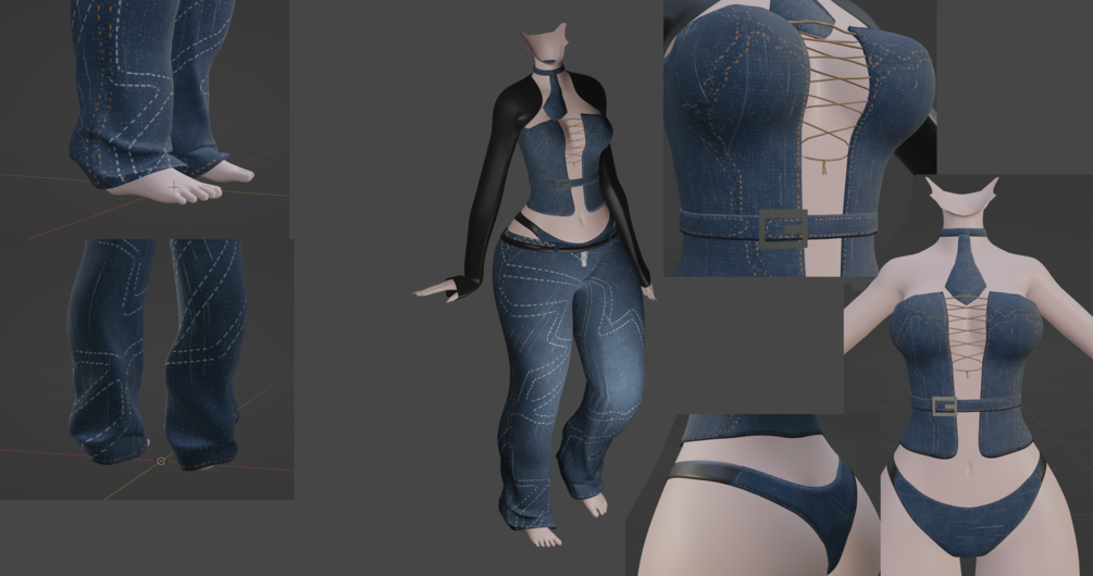 -> a .rar file with the textures for the crop top (choker shares this texture), jeans, tie and panties and an fbx file of the full outfit!